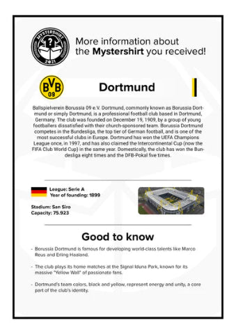 An info card with fun facts about the club and shirt you received